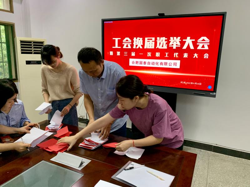 隨后,會議審議并通過了《合肥固泰自動化有限公司工會第三屆一次職工代表大會選舉辦法》、監票人、計票人、候選人名單。通過無記名投票,差額選舉產生了由郭劍、王璐璐、高燕、王存和徐立娟五位同志組成的新一屆工會委員會委員,郭劍當選為工會委員會主席;由丁一冰、徐艷和董艷芹三名同志組成的新一屆經審委員會,丁一冰當選為經審主任。