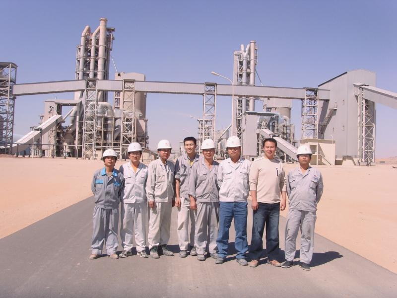 2005年7月20日,合肥院與沙特NAJRAN水泥公司簽訂了6000td水泥熟料生產(chǎn)線合同。這是合肥院承接的第一個(gè)EPC模式的總承包工程,是當(dāng)時(shí)國(guó)內(nèi)規(guī)模最大的水泥出口項(xiàng)目,也是沙特國(guó)內(nèi)最大的水泥生產(chǎn)線工程。2006年2月,合肥院與項(xiàng)目業(yè)主沙特納吉蘭水泥公司簽訂9000tpd熟料生產(chǎn)線二期EPC合同。上圖為簽約現(xiàn)場(chǎng)合影,下圖為合肥院施工人員在項(xiàng)目現(xiàn)場(chǎng)合影。