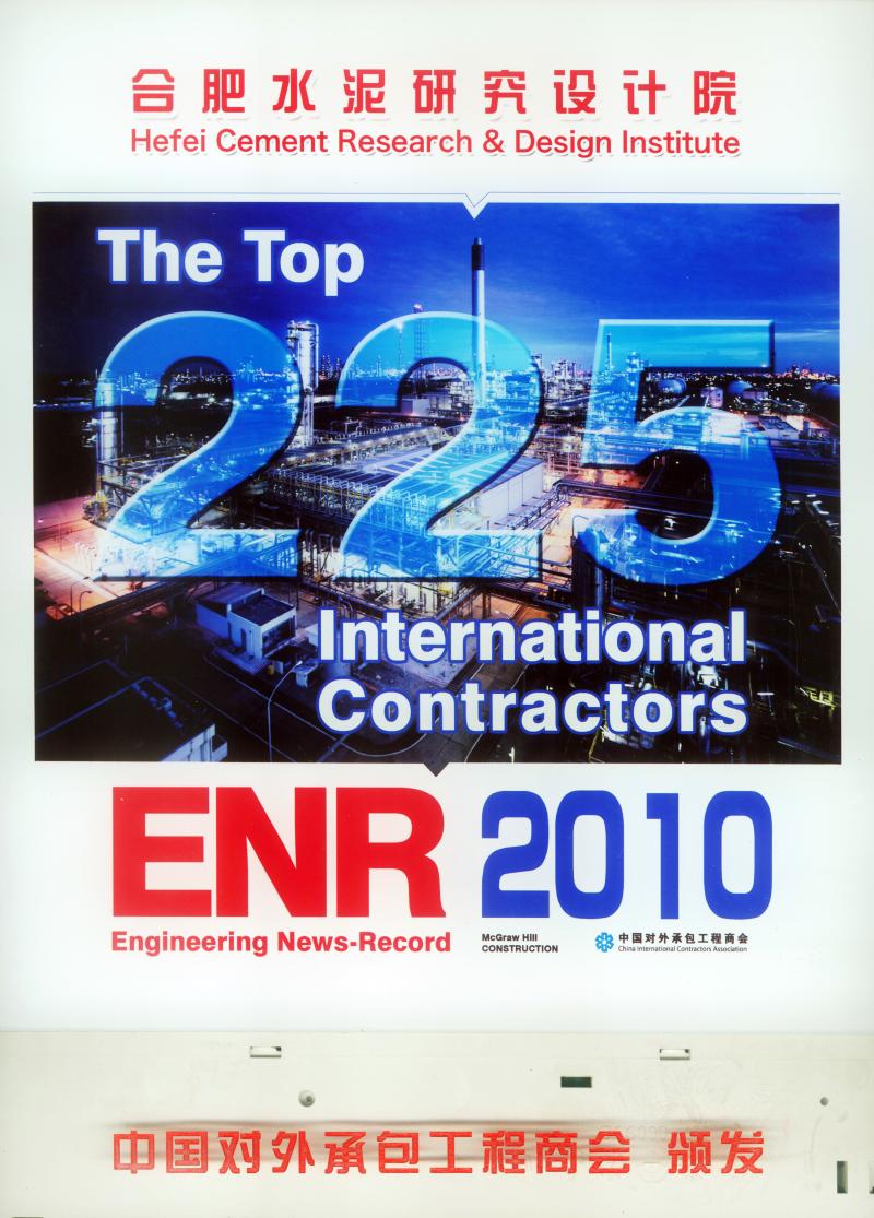 2009年9月5日,美國(guó)麥格勞·希爾建筑信息公司(McGraw-Hill)在其官方網(wǎng)站發(fā)布了2009年度Engineering News-Record(簡(jiǎn)稱“ENR”)全球最大225家國(guó)際承包商排名。我國(guó)內(nèi)地共有50家企業(yè)榜上有名,合肥院位列第145位,在中國(guó)企業(yè)中位列第29位。該榜單自開(kāi)評(píng)以來(lái)一直未有設(shè)計(jì)咨詢類企業(yè)入選,合肥院開(kāi)創(chuàng)了先例。
