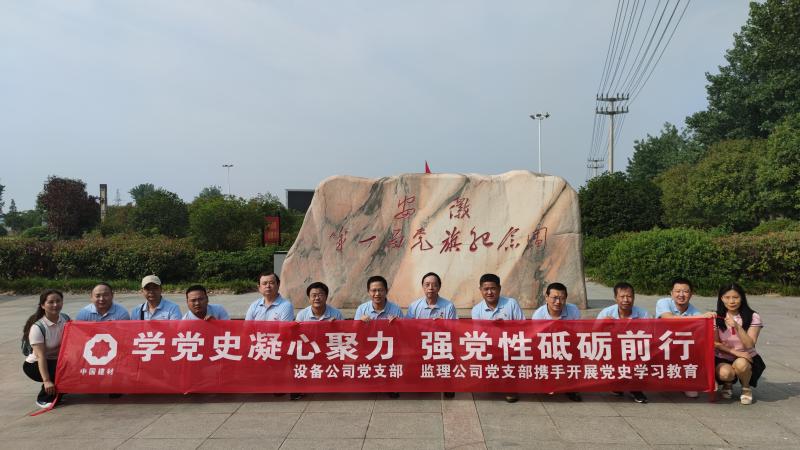 為了慶祝中國共產黨成立100周年,落實黨史學習教育工作計劃, 6月11日,我院設備公司和監理公司黨支部在中共安徽第一面黨旗紀念園和中國建材(合肥)技術中心工程項目現場開展主題為“學黨史、感黨恩、跟黨走”黨史學習教育實踐活動,支部黨員、入黨積極分子和部分中層以上干部參加了此次活動。
