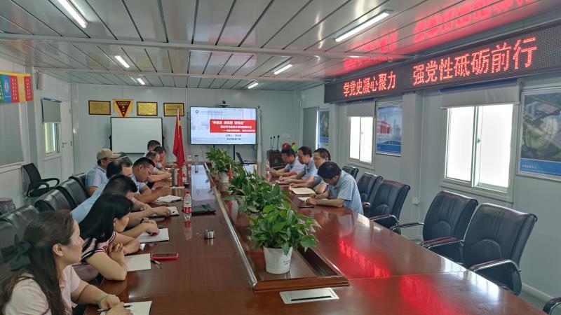 參觀項目現場后,在項目部會議室由設備公司黨支部書記高山林主持召開了黨史學習教育分享和交流會。會上,同志們先逐一做了簡單的自我介紹,隨后,監理公司總經理何宏濤和設備公司總經理許濤分別介紹了各自公司的企業現狀、業務范圍、優勢劣勢和企業特點,對照合肥院“十四五”規劃精神,大家對各公司“十四五”規劃及落實情況進行了交流討論;何宏濤和高山林分別介紹了各自黨支部開展黨史學習教育的情況和分享了經驗體會,參會同志分享了黨史學習教育的收獲,交流了本次活動的收獲和體會;最后,高山林對本次活動作了總結,闡明了活動意義,肯定了大家昂揚向上的熱情和積極學習的態度,并表示本次活動開展得很成功,起到了“學黨史凝心聚力,強黨性砥礪前行”的作用,以后將多開展類似的支部聯合活動。