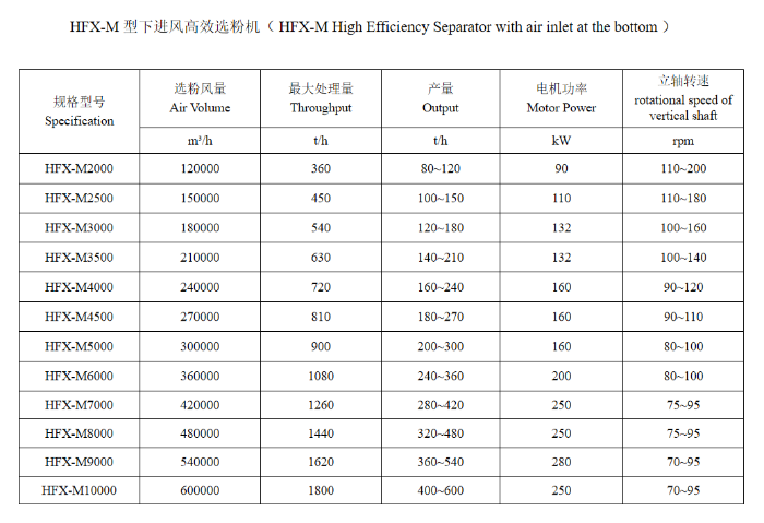 Hefei Cement Research & Design Institute established separation technology research team in 1959. It firstly developed the 3rd generation of high efficiency separator domestically, firstly applied high efficiency separator in raw mill and coal mill system, and firstly together with roller press made up combined grinding, raw meal final grinding, cement semi-final grinding system and so on. It was awarded “New Product at the State Level”, “Excellent Energy Saving Fruit at the State Level”, “Famous-brand Product in Building Material Industry” and “the Second Prize of Scientific and Technological Advancement in Building Material Industry”, etc. Recently, it won five innovation patents, and more than 20 utility model patents. Dozens of thesis have been published on the national first grade periodical about our famous brands of DS and HES high efficiency separators, and HFVW horizontal dynamic separator. Recently, we have developed HFX series high efficiency separator, which combines advantages of various types of separators and whose separation efficiency is more than 10 percentage points higher than other high efficiency separators. 3~30μm granule content and strength of cement are increased. 200μm sieve of raw meal is reduced to increase burnability of raw meal; 80μm sieve of pulverized coal is reduced to satisfy the burning requirement of low quality coal. Different types of separator are selected to meet the separation of various grain sizes from 50 meshes to 1250 meshes, according to differentiated demand.