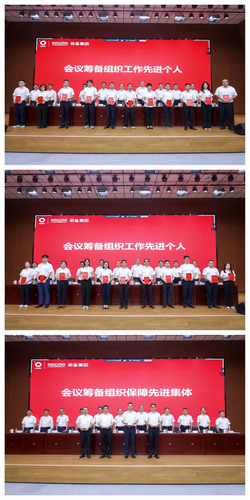 裝備集團黨委副書記殷召飛宣讀《關于表彰中材國際第三屆水泥綠色智能發展大會會議籌備組織工作先進個人及會議籌備組織保障先進集體的決定》,公司領導班子為獲獎代表頒獎。