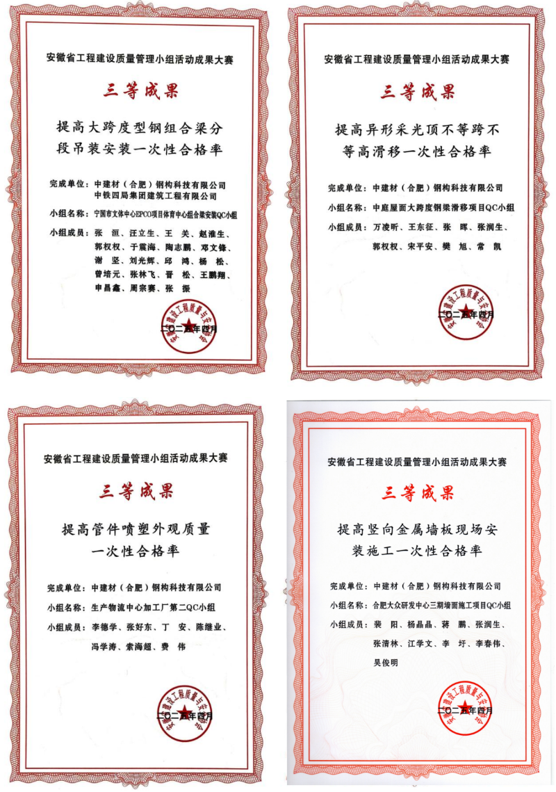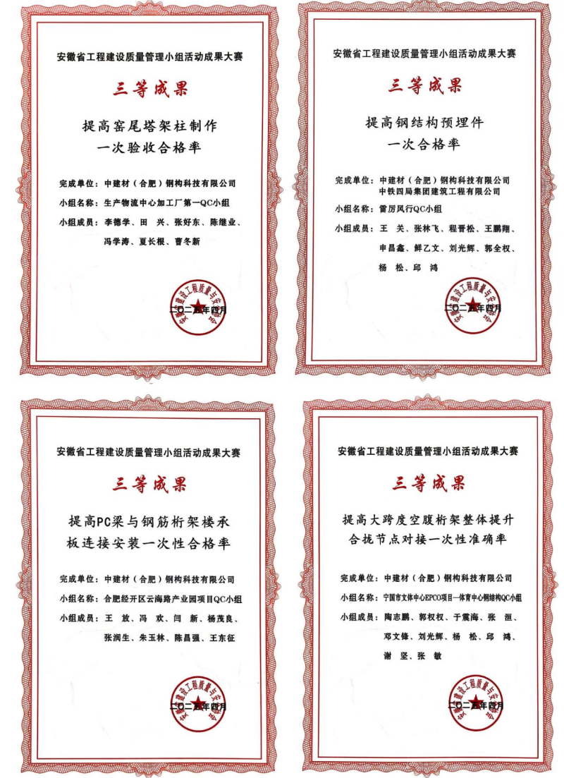 中建材鋼構(gòu)公司榮獲安徽省工程建設(shè)質(zhì)量管理QC大賽十項成果